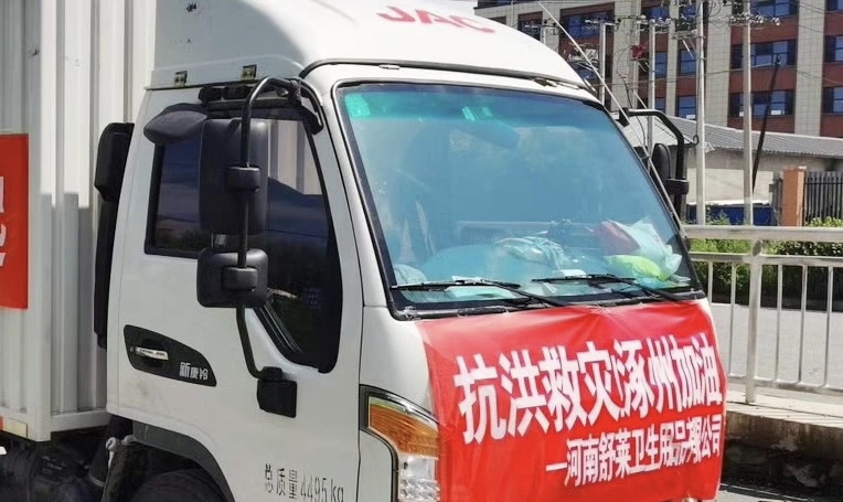 “群众都知道洪灾过后的卫生健康保障可重要,现在涿州正是缺物资的时候,我们作为兄弟省,就理应伸出援手。我们的工作人员在跟河北涿州妇联对接好后,用了不到一天的时间,就从我们公司在河北区域的保定市仓库与徐水县仓库联系调配好了物资,在确定涿州能通车后,当天就安排人驱车抵达涿州。希望这些物资能够给受灾群众提供帮助,如果需要,我们再筹集,一批接一批送过去。”舒莱公司副总经理赵华伟告诉记者。