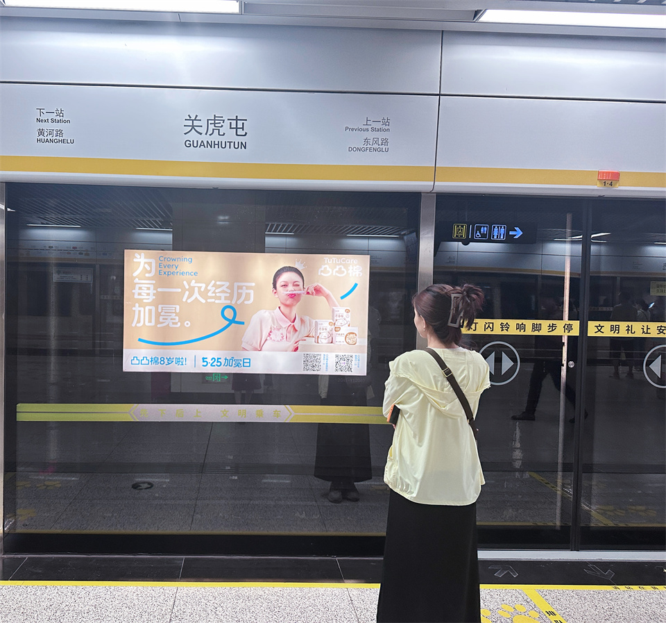 生日前夕,凸凸棉525加冕日宣传海报,出现在郑州地铁的多个站点,除此之外,在世玺中心、建业凯旋商业等各大商圈中心和热门公交站台都能看到凸凸棉的身影,引来不少路过的市民驻足拍照分享,对即将到来的活动充满期待。