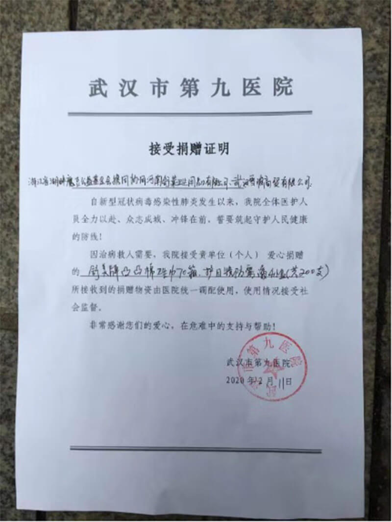 一方有难八方支援,这句话始终铭记在每一位舒莱人的心中。无论是以前的汶川地震,还是如今武汉的新型病毒,舒莱都在第一时间提供力所能及的帮助。疫情来之突然,病毒猖獗,疫情严重,前线告急,在这突发的困难面前,舒莱没有考虑与迟疑,积极响应共同抗疫。舒莱当即响应政府号召向疫情指挥部捐款十万元,以作抗疫资金,因为舒莱深知自身所肩负的社会责任。