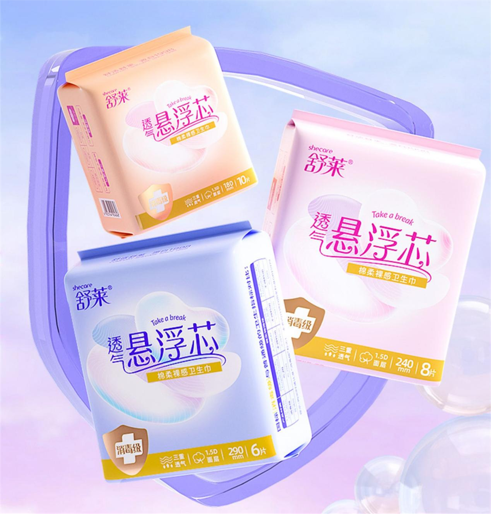 舒莱透气悬浮芯卫生巾在出厂前,都会经历多一道48小时医用级环氧乙烷全密封消毒工序,真正做到专业抑菌≥99%,有效减少细菌滋生,减少异味产生的可能。而且巾身采用悬浮设计,立体悬浮芯更贴合,可以随心而动,更加贴合身体曲线,舒适感升级,侧漏风险大大降低。特别的设计能够有效减少卫生巾与大腿内侧之间的摩擦,闷热夏天使用也能够做到无感舒适,干爽洁净。