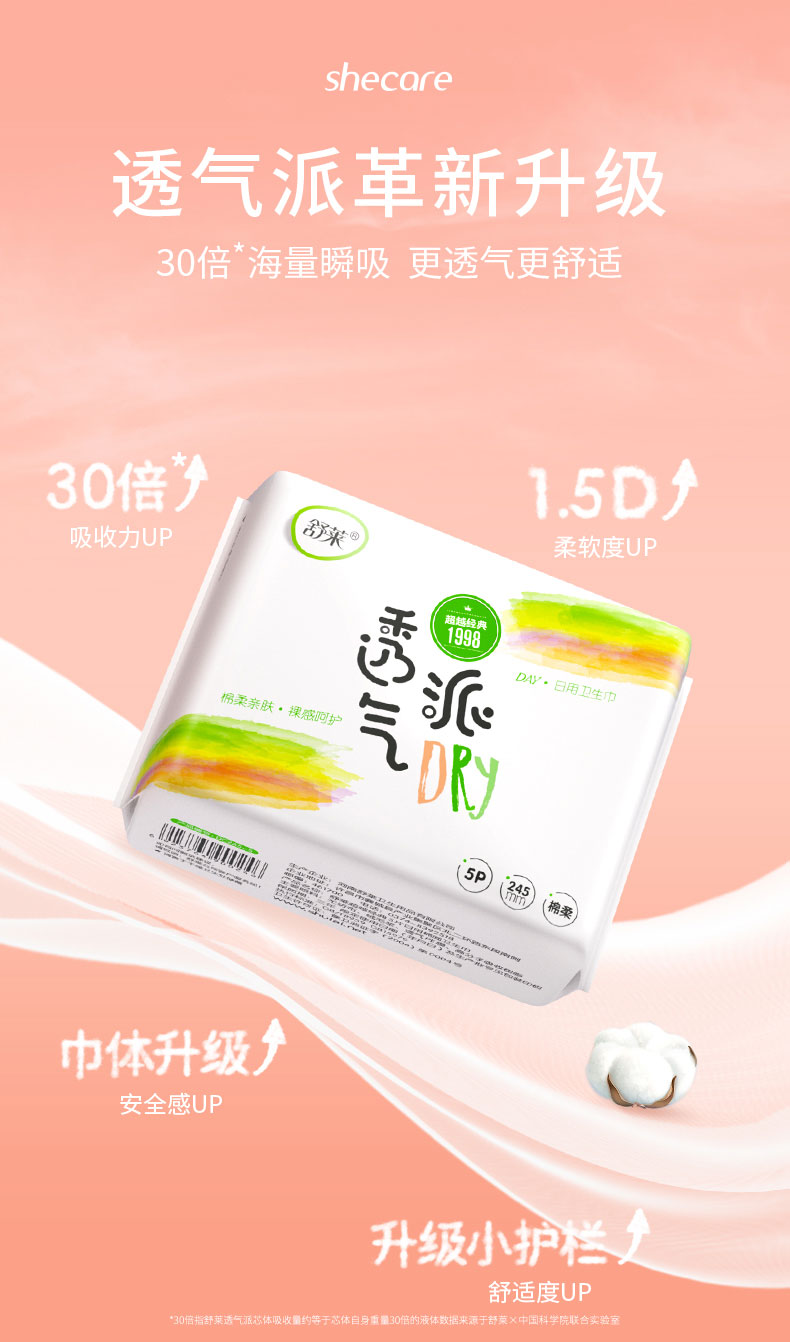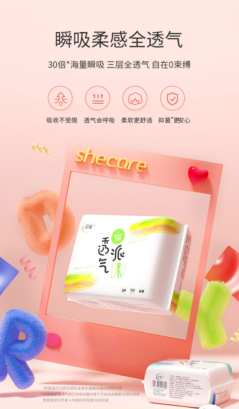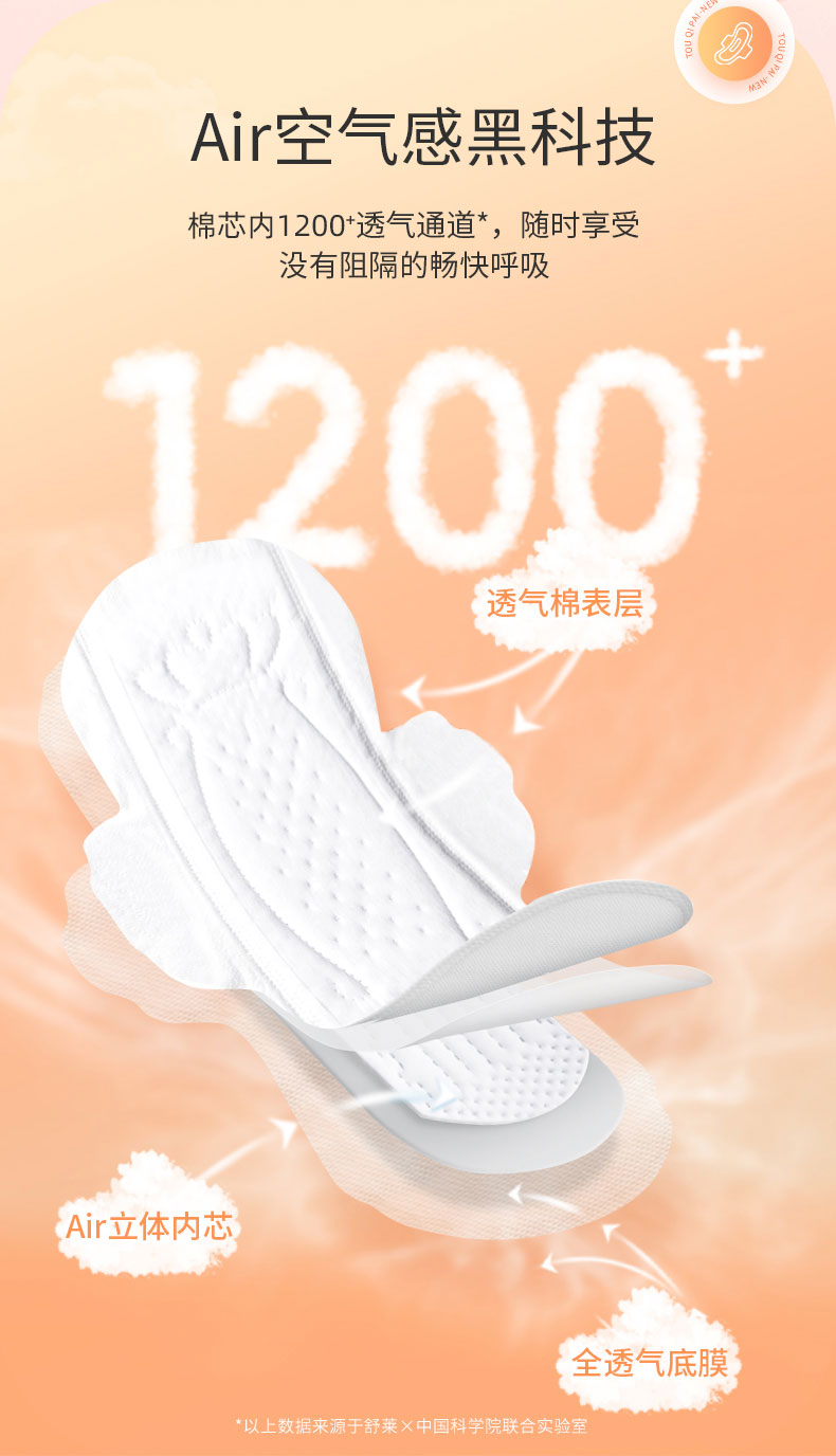 瞬吸柔感,三层全透气,肌肤自由呼吸