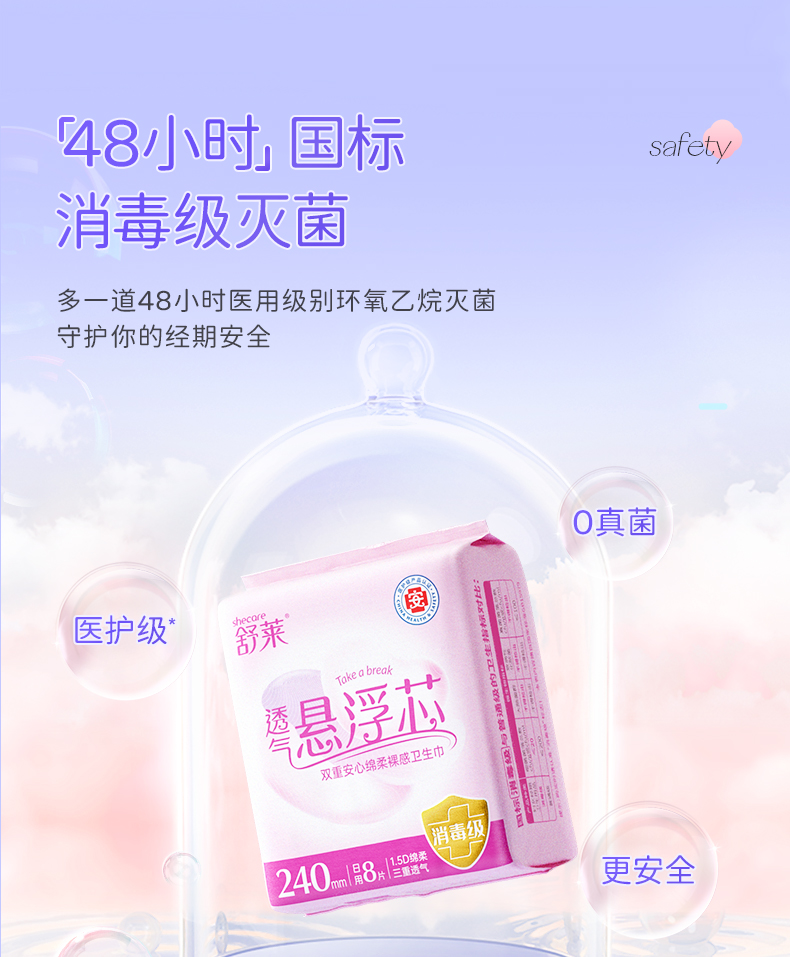 多一道48小时医用级环氧乙烷消毒,医护级认证比普通卫生巾更安全