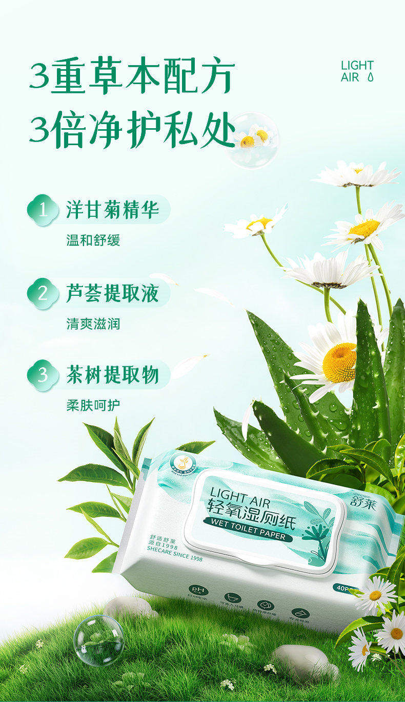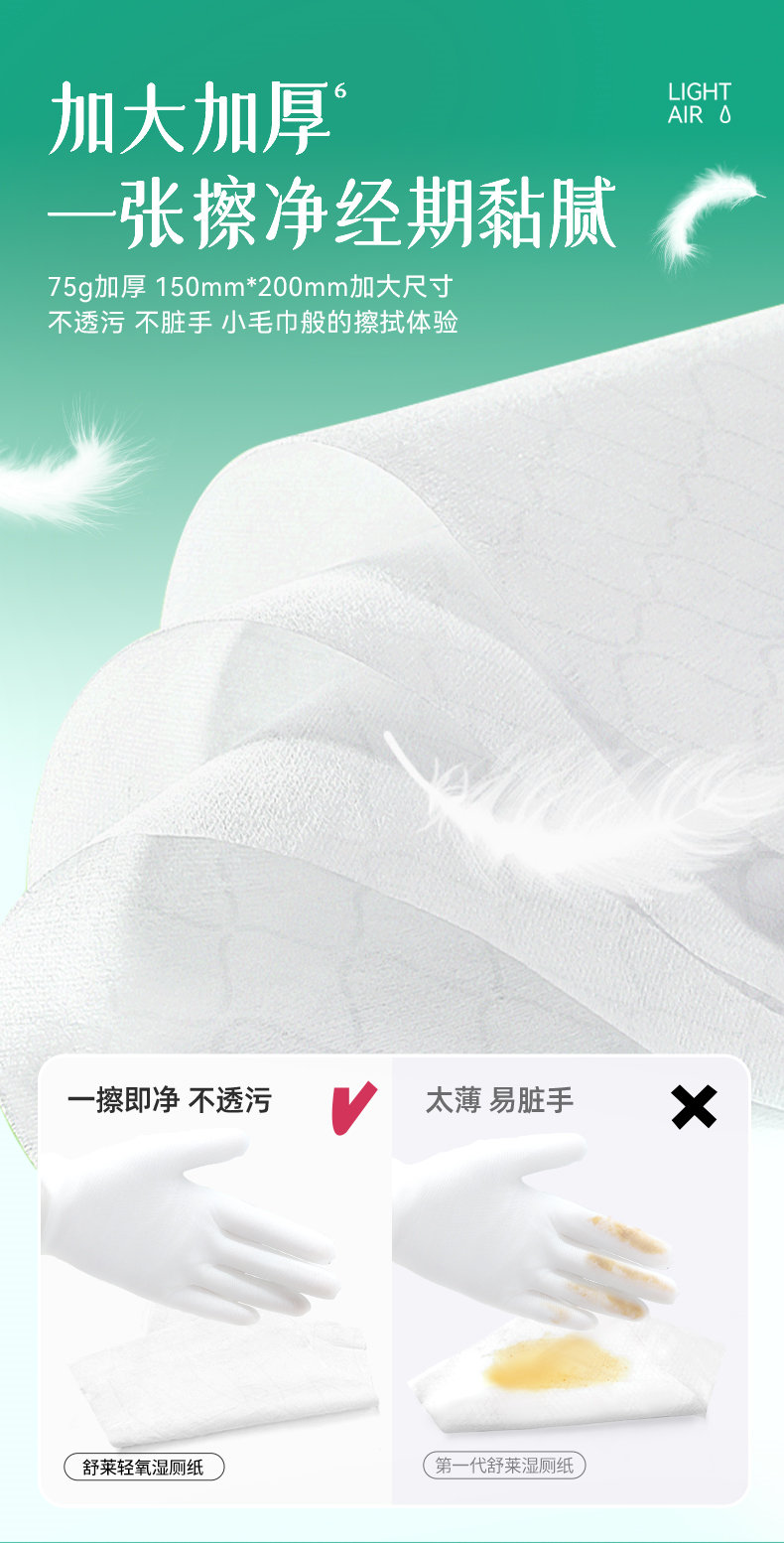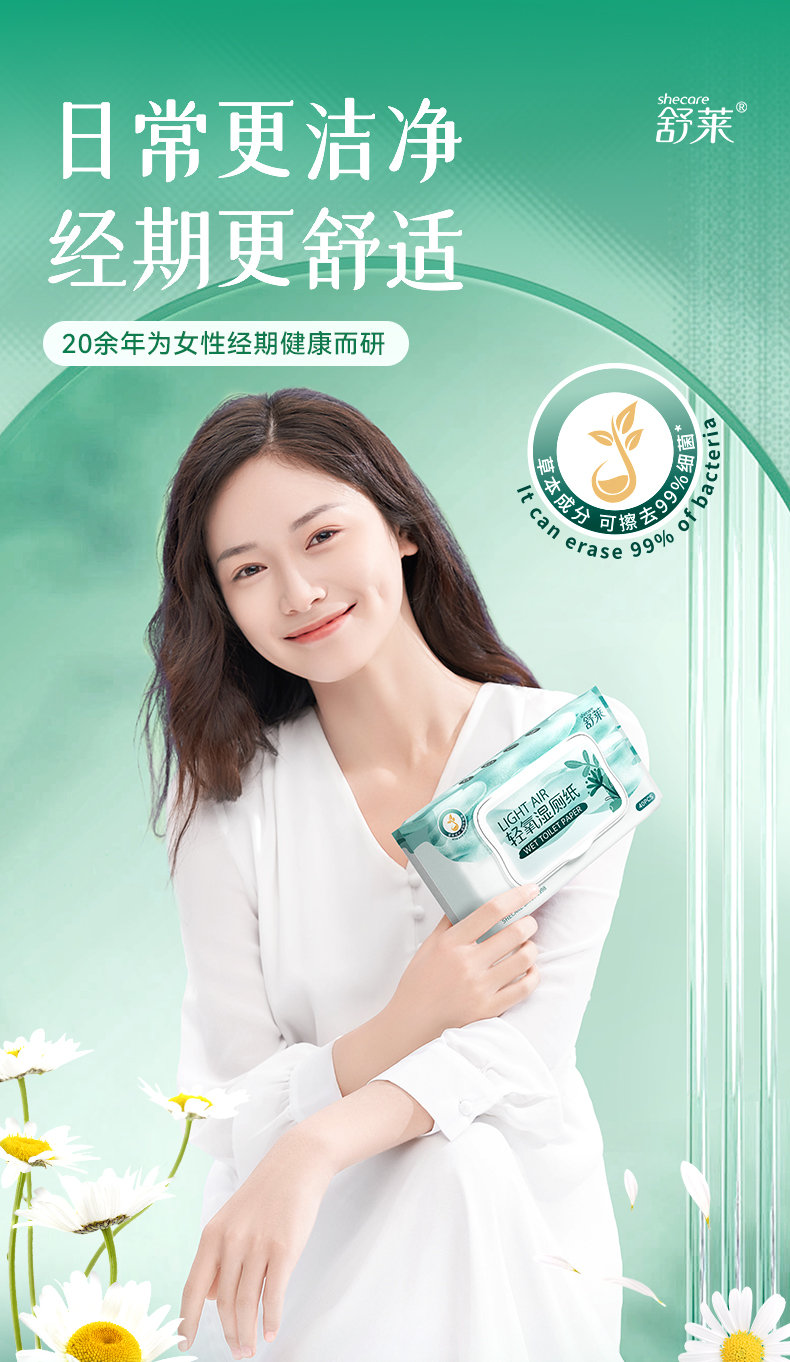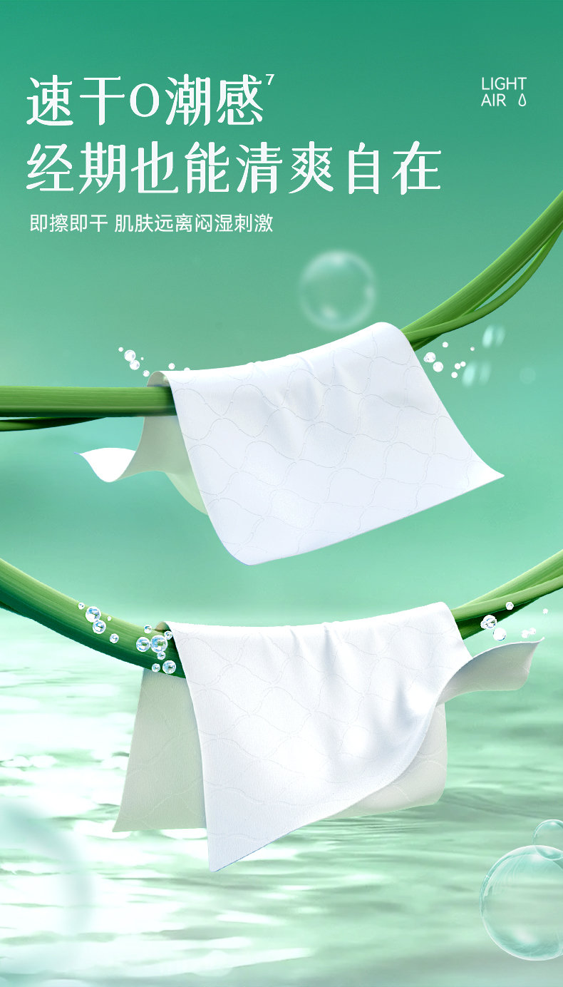 天然草本植萃净护,擦去经血黏腻和细菌,经期更舒适