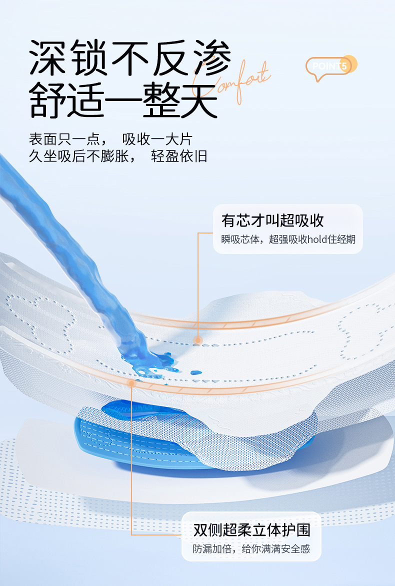 0.07cm极薄巾身,50倍海量吸收,自在舒适0负担