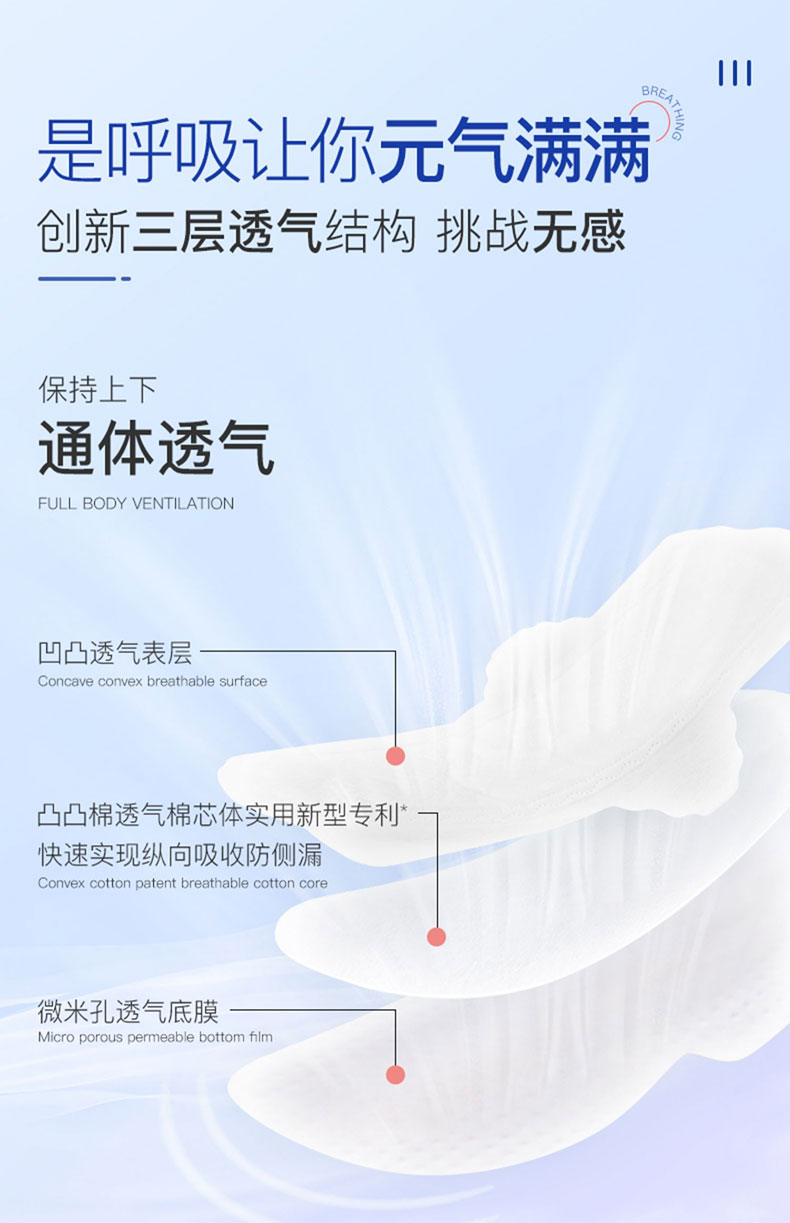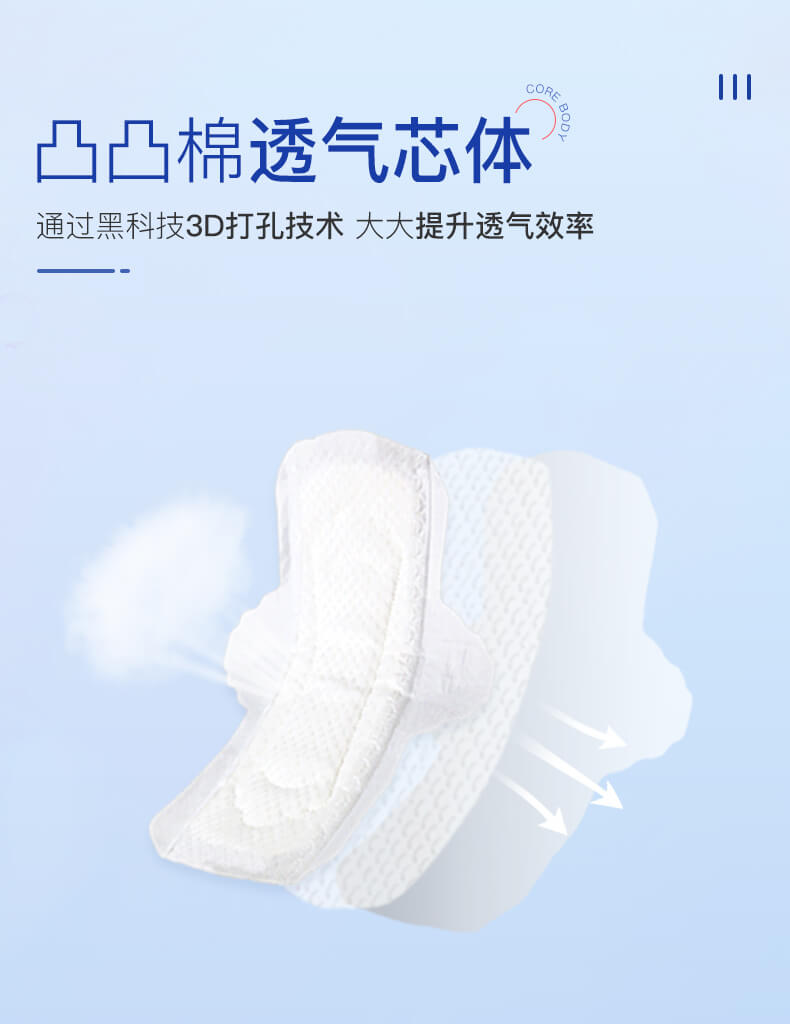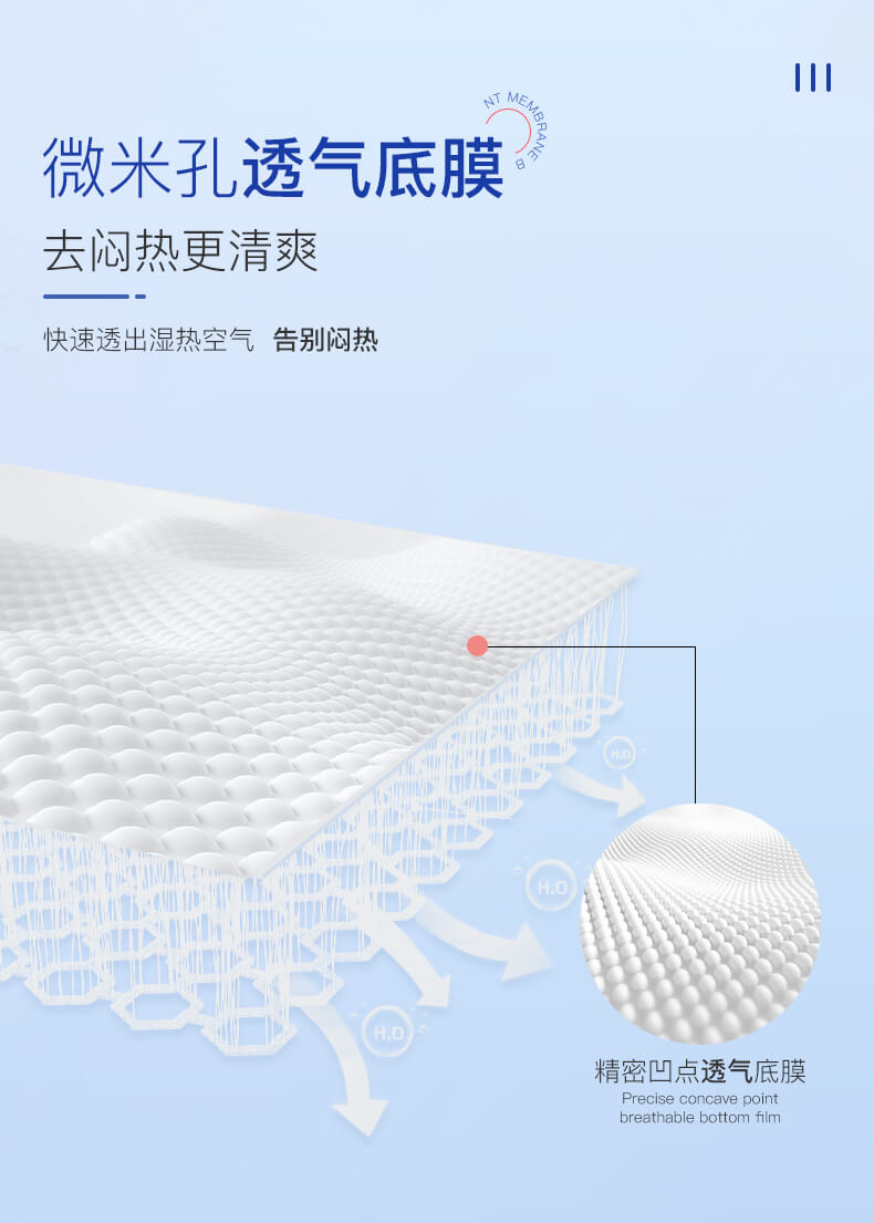 3D凹凸柔点表层,三层透气,时刻保持干爽