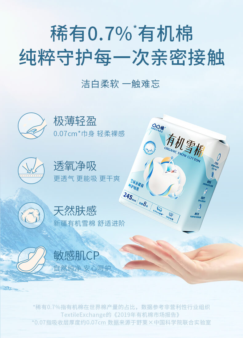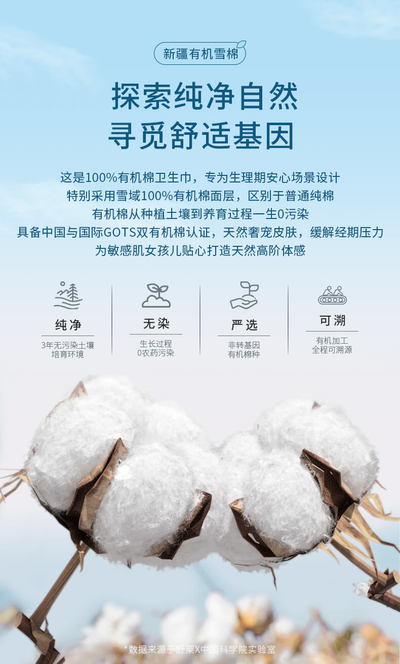 甄选新疆有机雪域棉,0.07cm极薄一体芯,纯净更安全